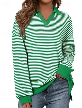 Dámské Tričko Tričko Top Proužky Módní stylové Klasické Dlouhý rukáv Do V Běžné topy Denní Jdeme ven Víkend Vodní modrá Černá Světle zelená Rubínově červená Trávová zelená Jaro Podzim