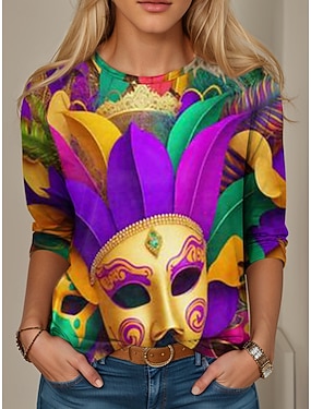 Carnival dámské tričko s grafikou geometrické vintage stylové moderní dlouhý rukáv kruhový výstřih běžné topy každodenní víkendový tisk žlutá fialová jaro zima