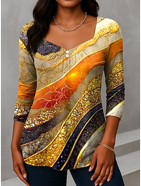 Nový rok Dámské Tričko Tisk Tónované Grafika Vinobraní Módní stylové Dlouhý rukáv Do V Běžné topy Denní Žlutá Světlá růžová Rubínově červená Oranžová Zlatá Léto Jaro Podzim