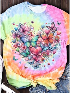 Dámské Tričko Tisk Grafika Motýl Batikované Vinobraní stylové Klasické Krátký rukáv Tričkový Běžné topy Denní Vodní modrá Světlá růžová Duhová Léto Jaro