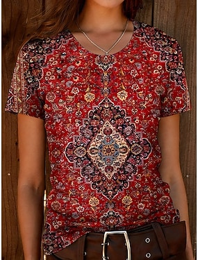 Dámské Tričko Tisk Grafika Zvíře Vinobraní stylové Klasické Krátký rukáv Tričkový Běžné topy Denní Víkend Rubínově červená Léto Jaro