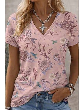 Dámské Tričko Tisk Květinový Grafika Vinobraní stylové Klasické Krátký rukáv Tričkový Kulatý Běžné topy Denní Jdeme ven Víkend Černá Bílá Světlá růžová Růžová Léto Jaro Podzim