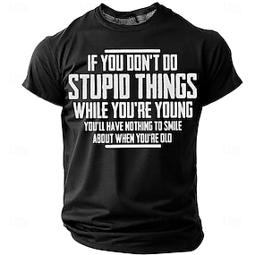 Vtipný slogan: Pokud neděláš hlouposti, když jsi mladý, nebudeš se mít proč usmívat, až zestárneš. Pánské černé tričko s typografií, grafikou, oblečení, velikosti S, M, L, XL, XXL, XXXL.