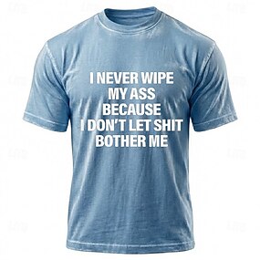 Dárek s roubíkem, nikdy si neutírám zadek, protože se nenechám otravovat žádnými sračkami, vtipné sarkastické tričko s minerálním praním, vintage modrá bavlněná směs, tričko s krátkým rukávem, s
