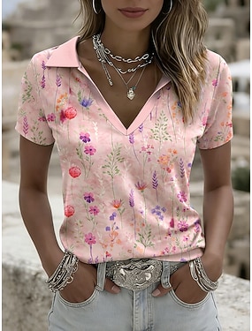 Dámské Tričko Tisk Květinový Grafika stylové Klasické Na běžné nošení Krátký rukáv Polo límec Běžné topy Ležérní Denní Sport Vodní modrá Světlá růžová Fialová Trávová zelená Léto Jaro