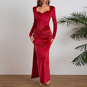 Dámské Dlouhé šaty Maxi šaty Sametové šaty Šaty na párty Koktejlky Elegantní Módní Moderní Večerní oslava Párty Koktejlový večírek Běžný Bez vzoru Dlouhý rukáv Hranatý Černá Rubínově červená Fialov