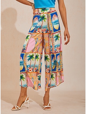 Dámské Kalhoty Volný Rovné Plná délka Satén Tisk Moderní soudobé Plážový styl Dovolená Denní nošení Multi Color Jaro léto XS S M