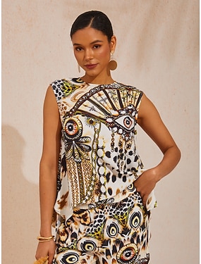 Hedvábný saténový top s růžovým paisley vzorem od Blush&Beast