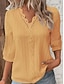 Dámské Košile Halenka Krajkové topy Poutko Bez vzoru stylové Klasické Moderní 3/4 délka rukávu Do V Běžné topy Denní Dovolená Jdeme ven Černá Bílá Žlutá Rubínově červená Trávová zelená Léto Jaro