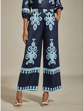Dámské široké kalhoty z hedvábného saténu s elastickým pasem, nabíraným pasem, rovným střihem, volným vzorem, etnickým geometrickým potiskem, ležérním, prázdninovým, jarním, létem, podzimním