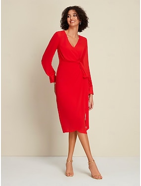 červený šifon obyčejný večírek/svatba kravata pro hosty vpředu uzel zavinovací sada šatů s dlouhým rukávem šaty pro dojem 2024