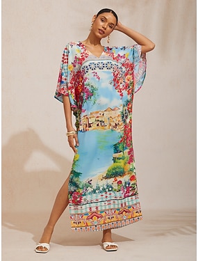 Maxi šaty s rukávy z Mallorca Blossom splývavý šifon Dolman