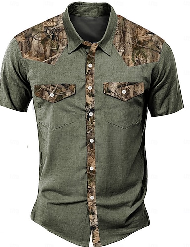 Pánské Kamuflážní barva Westernová košile Krátký rukáv Západní Outdoorové sporty Léto Přehnutý Tlačítko nahoru 2 kapsy Černá Trávová zelená Béžová