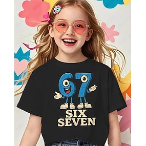 Bavlna Děti Dívčí Černá Grafika Vtipný slang 67 Tričko Košilky Tričkový Krátký rukáv Dovolená Sporty a outdoor Na den Šik ven Na běžné nošení Potisk Léto