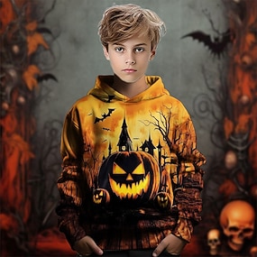 předvečer Všech svatých Chlapecké 3D Dýně Kapuce Dlouhý rukáv Jaro Podzim Módní Šik ven Děti 4-12 let Kapuce Venkovní Ležérní Denní Běžný
