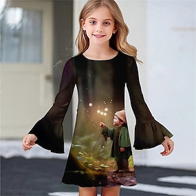Girls ' 3D Grafika Šaty Dlouhý rukáv Léto Jaro Dovolená Denní Princeznovské Krásná Sladký Děti 4-12 let Volnočasové šaty Áčkové šaty Délka ke kolenům Běžný
