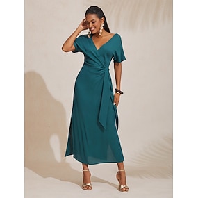Dámské Midi šaty Volnočasové šaty Zavazovací šaty Elegantní Módní Moderní Venkovní Dovolená Jdeme ven Běžný Bez vzoru Krátký rukáv Do V Vodní modrá Černá Rubínově červená Hnědá Léto Jaro