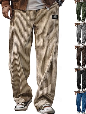 Pánské Tepláky Kalhoty Kordurové kalhoty Volné kalhoty Tepláky s rovnými nohama Šňůrky Elastický pas Pevná barva Pohodlné Plná délka Venkovní Denní Streetwear Módní Klasický styl Volný Čern