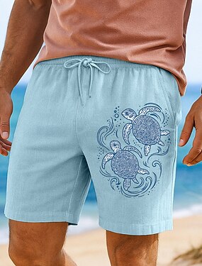 kokosová palma pánské bavlněné plátěné šortky letní havajské šortky plážové šortky potisk šňůrka elastický pas prodyšné měkké 20% len šortky ležérní denní dovolená streetwear