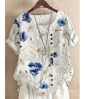 Dámské Košile Košile inspirovaná plátnem Halenka Květinový Na běžné nošení Krátký rukáv Tričkový Běžné topy Dovolená Denní Tisk Žlutá Světle zelená Námořnická modř Vodní modrá Fialová Léto