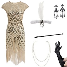 Řvoucí 20s Retro Velký Gatsby Úbory Kostým na Večírek Maškarní Bez rukávů Velký Gatsby Svatební host Flitry Třásně Flitry Třásně Kulatý Maškarní kostým Dámské předvečer Všech svatých Karneval Plesov