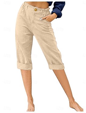 Dámské Capri kalhoty Imitace bavlny a lnu Kalhoty chinos Letní šortky Základní Na běžné nošení Capris Vysoký pas Bez vzoru Kapsy Elastický pas Pohodlný Yumuşak Pohodlné Lehce elastické Venkovn