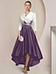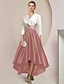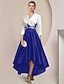 A-line šaty pro matku nevěsty  smokingové šaty  formální svatební host  elegantní  vysoké nízké  kulatý límeček  asymetrická  délka čaje  satén  krajka s aplikacemi barevný blok  šaty pro závodní den