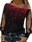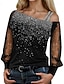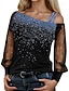 Vánoční dámské tričko s vločkami grafika elegantní vintage párty dlouhý rukáv asymetrický normální střih topy párty večerní nošení sváteční oblečení třpytivé černá červená modrá fialová zelená jaro