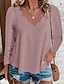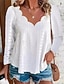 Dámské bílé elegantní krajkové topy blůza s očky ležérní jednobarevné pravidelné topy dlouhý rukáv asymetrický krajkový patchwork pravidelná velikost každodenní černé bílé růžové romantické malé topy
