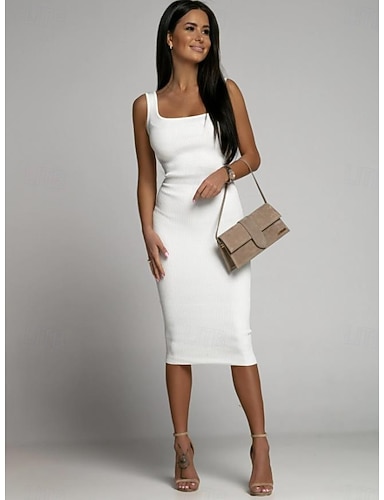 Dámské Midi šaty Černé šaty Koktejlky Formální šaty Obyčejné šaty Na běžné nošení ulice Rande Běžný Bez vzoru Bez rukávů Tričkový Černá Bílá Vodní modrá Meruňková Léto Jaro