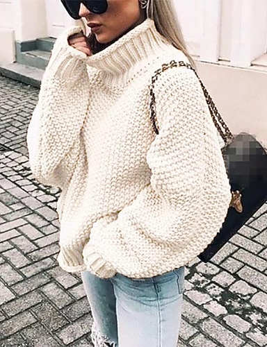 Dámské Pulovrový svetr Základní Na běžné nošení Pevná barva Tlustý háčkované Rolák Pletený Dlouhý rukáv Plést Denní Jdeme ven Světle modrá Černá Podzim Zima