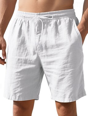 Pánské Kraťasy Lněné šortky Letní šortky Plážové šortky Šňůrky Elastický pas Bez vzoru Pohodlné Prodyšné Délka kolen Venkovní Denní Plážové prázdniny Klasický styl Černá Bílá