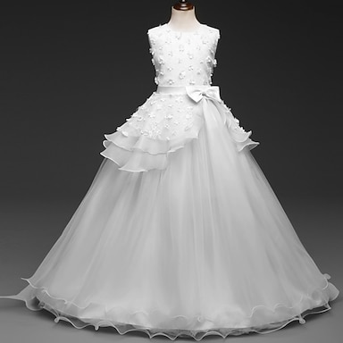 Šaty pro květinovou družičku Dívčí Formální šaty Svatební Oblečení Párty Svatební Formální Formální Princeznovské Šaty na první přijímání Slátanina Síťka Květinový Bez rukávů Tričkový Bílá Světl