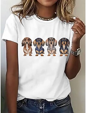 Dámské Tričko Tisk Grafika Zvíře Pes Vinobraní stylové Klasické Krátký rukáv Do V Běžné topy Denní Jdeme ven Víkend Vodní modrá Černá Bílá Světlá růžová Trávová zelená Léto Jaro