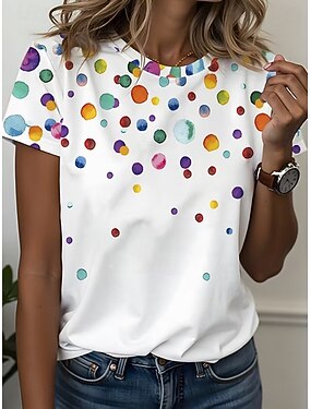 Dámské Tričko Puntíky Tisk Grafika Puntíky stylové Klasické Na běžné nošení Krátký rukáv Tričkový Běžné topy Ležérní Denní Bílá Rubínově červená Inkoustová modř černá+bílá Léto Jaro