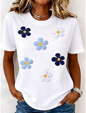 Dámské Tričko Tisk Květinový Grafika Rostliny Módní stylové Klasické Krátký rukáv Tričkový Kulatý Běžné topy Ležérní Denní Víkend Vodní modrá Tmavěhnědá Zelená s béžovou Černá Bílá Léto Jaro