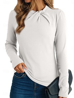 Dámské Halenka Nabírané šaty Pevná barva stylové Moderní Na běžné nošení Dlouhý rukáv Tričkový Běžné topy Denní Bílá Armádní zelená Hnědá Meruňková Jaro Podzim Zima