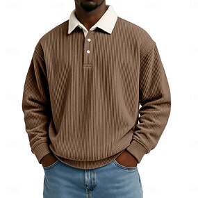 Pánské Polokošile Golfové polokošile Obchod Ležérní Klopa Klasický Dlouhý rukáv Vinobraní Pevná barva Retro styl Zima Jaro & podzim Celý rok Běžný Černá Hnědá Zelená Světle modrá Fialová Námořnick