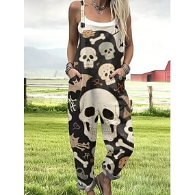 Legíny pro ženy dovolená vintage móda plné délky vysoká pas grafika lebka potisk termální teplé měkké prodyšné pružné formální venkovní dovolená černá bílá jaro podzim štíhlý střih