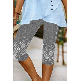 Dámské Capri kalhoty Legíny Pohodlné legíny Šik ven Na běžné nošení Telecí délka Přírodní Geometrické tvary Tisk Pohodlný Venkovní Pohodlné Venkovní Běžné / Denní Černá Léto Běžný