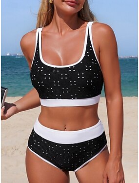 Dámské Plavky Bikiny 2 ks Vysoký pas Plavky Štíhlý Volná záda prázdniny Oblečení na pláž Pevná barva Puntíky Kopeček Bez rukávů Plavky