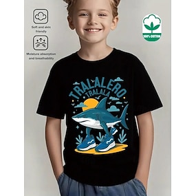 Chlapecké vtipné italské bavlněné tričko s krátkým rukávem a potiskem mozkové rotace s kreslenými potisky a botkami s roztomilým žralokem s motivem mozkové rotace.