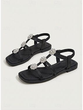 dámské křišťálově zdobené sandály s páskem ve tvaru T – elegantní ploché sandály s kamínky pro svatby, pláž nebo zvláštní příležitosti
