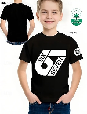 Bavlna Děti Chlapecké Černá Grafika Vtipný slang 67 Tričko Blůzky Tričkový Krátký rukáv Venkovní Na den Módní Šik ven Designové Potisk Léto