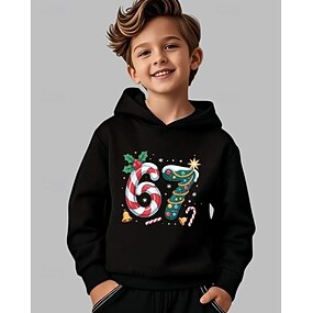 Vánoce Unisex Chlapecké 3D Grafika Vtipný slang 67 Kapuce Pullover Dlouhý rukáv 3D tisk Podzim Zima Sportovní Módní Šik ven Děti 4-12 let Kapuce Venkovní Ležérní Denní Běžný