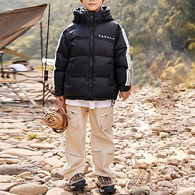 Děti Chlapecké Dolů Mikina s kapucí Svrchní oděvy Písmeno Dlouhý rukáv Zip Kapsy Kabát Venkovní Denní Černá Rubínově červená Námořnická modř Zima 4 roky +