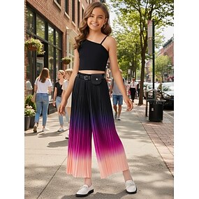 2 kusy Děti Dívčí Spád Nabírané šaty Tank & Kalhoty Soubor Bez rukávů Sportovní Ležérní 7-13 let Léto Černá