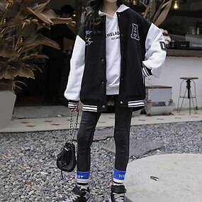 dětský dívčí kabát dlouhý rukáv šedé písmeno podzim zima aktivní ulice 4-13 let