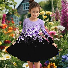 Velikonoce Girls ' 3D Květinový Grafika Šaty Dlouhý rukáv Léto Jaro Dovolená Denní Princeznovské Krásná Sladký Děti 4-12 let Volnočasové šaty Áčkové šaty Délka ke kolenům Běžný