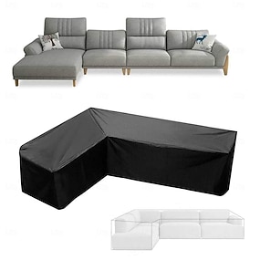 Kryty zahradního nábytku ve tvaru L, vodotěsné, prachotěsné, na terasu, venkovní jídelní soupravu, chránič pohovky, zimní ochrana trávníku (215x215x87cm, černá)